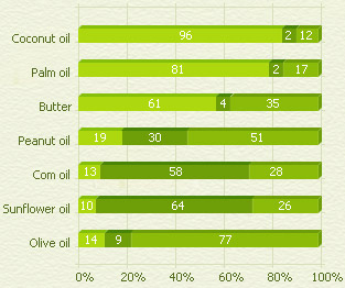 It contains more monounsaturated fat (77 percent) than any other fat or oil. The monounsaturated fat in olive oil encourages the body to produce high density lipoproteins (HDLs).